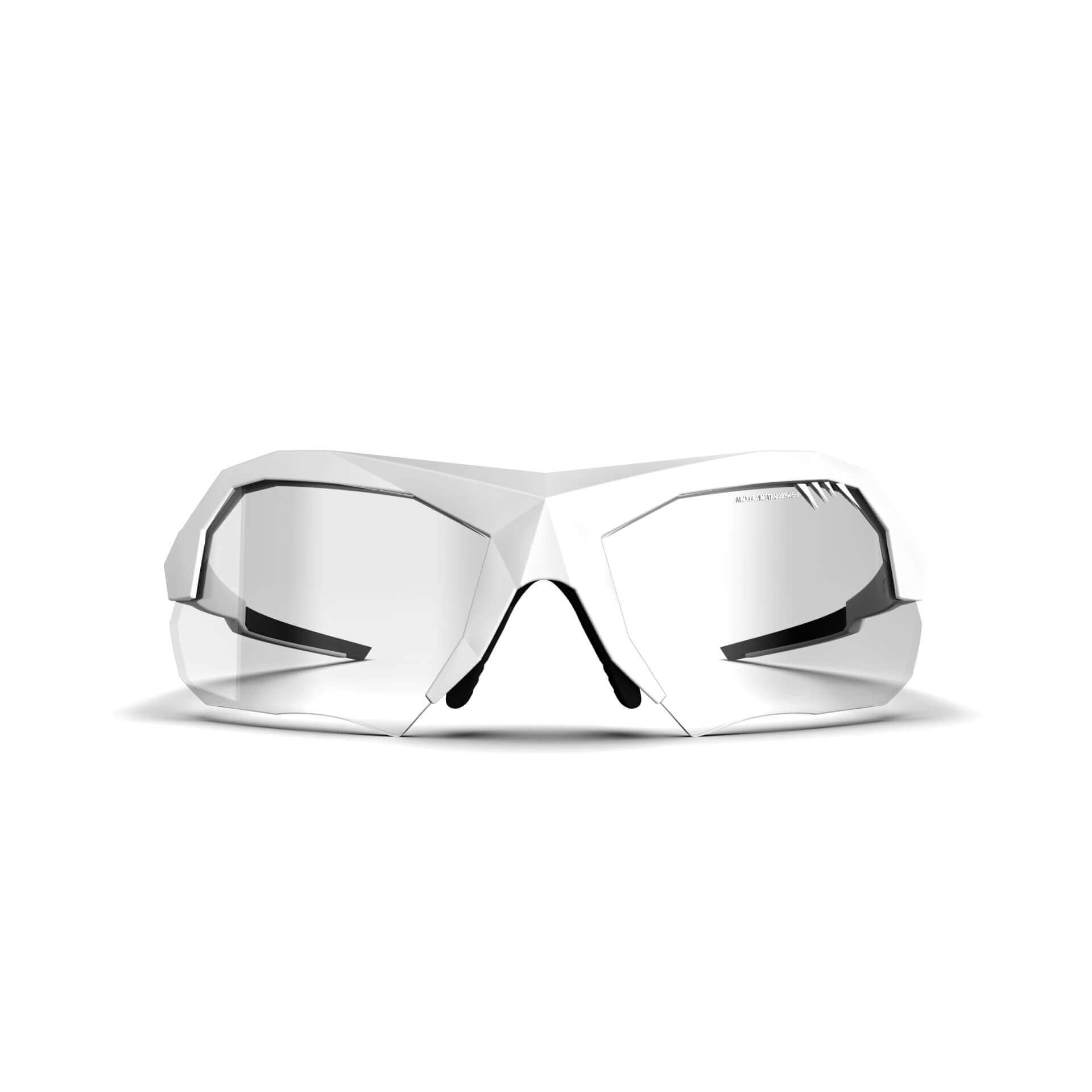 Altera Stealth photochrom1c Ph5: advanced photochromic sports eyewear featuring a satin white frame with clear-to-smoke adaptive lenses. The perfect sports glasses for adverse and changing weather conditions